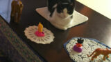 効果があったのは、喫茶店のドアに付いているような、開けるとカランカランとなる、あれ。玄関の扉の上の方に、ベルを付けました。電気を使わない(コードを引っ張ってこなくていい)し、猫は鳴らさないから人の出入りの時だけ鳴ります。ベルは涼しげな音だったので、耳にも心地よかったです。小さな家なのでそれくらいの音でちょうどよかったです。